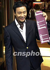香港演艺界大牌明星“哥哥”张国荣,10月10日出席全世界最著名的英国男装品牌Dunhill香港旗舰店开业仪式时,身着价格昂贵的Dunhill西服亮相。任晨鸣 摄