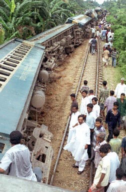 10月10日,一列载有600名旅客的火车在孟加拉国首都达卡附近出轨,造成数人死亡,至少80人受伤。图为事故现场。
