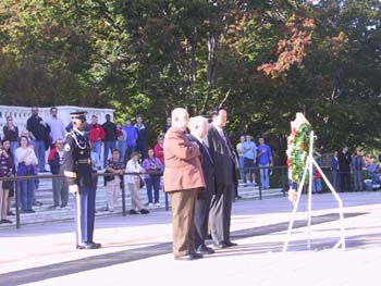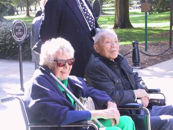 今天,在阿灵顿国家公墓,朗朗晴空下,一群白发苍苍的耄耋老人,一群当年在反法西斯战争中并肩作战的中美老兵们,向牺牲的战友们献上了花圈。不远处是“二战”中牺牲的美军官兵的墓碑,更远处是“九一一”中遭受恐怖袭击的五角大楼。明媚的秋日中,人们神情肃穆,祈求安宁与和平。