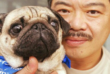 10月19日,在日本东京举行的“相似者宠物比赛”中,获得冠、亚军的选手展示他们与宠物的合影。