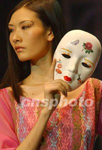十月宁波第八届国际服装节上,来自中外的服装企业推出品牌专场展示会。图为模特展示2003春秋新款服饰作品。作者:钱兴强