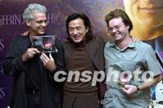 影星成龙主演的电影《Highbinders》,10月22日与该片特别版监制Bill Borden及哥伦比亚电影公司高级副总裁Benedict Carver出席该片新闻发布会。成龙身为香港旅游大使,极力说服Bill Borden将拍摄场景搬到香港。邓庆乐 摄