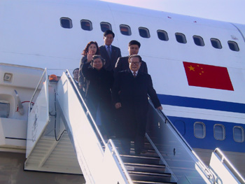 当时时间22日上午十时三十分江泽民主席和夫人王冶坪一行抵达芝加哥开始对美国进行访问