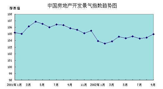 今年前9个月,国房景气指数总体走势比较平稳,波动幅度不大。“国房景气指数”尽管仍然低于去年同期水平,但近两个月以来,连续保持上扬态势。
