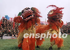 沈阳军区某部官兵,今秋在部队组织的周末文化活动中舞狮子自娱自乐。在艰苦的军事训练之余,该部队极力想办法丰富官兵的精神文化生活。作者:马樯