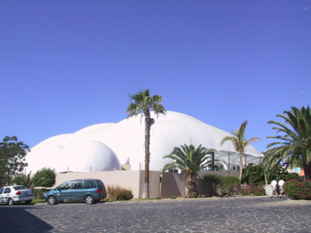 与主中心对面还有一座用气“吹”起来的建筑,它就是专供各大通讯社和电视机构的转播厅