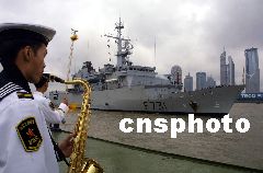10月30日,法国海军“牧月”号导弹护卫舰在舰长哥萨维埃·博杜阿尔中校的率领下,缓缓驶抵上海海军杨子江码头。开始对上海进行为期6天的友好访问。法舰抵达后,舰长哥萨维埃·博杜阿尔中校先后拜会了海军上海基地司令员许纪文少将和上海市有关领导。访问期间,两国水兵进行了足球友谊赛,相互参观了两国军舰等活动。此次随舰来访官兵共90人,其中军官11人,士兵79人。张海峰 摄