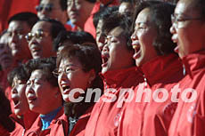 一日,北京市安定门街道的居民高歌《没有共产党,就没有新中国》,喜迎八日即将召开的中共十六次代表大会。作者:史利