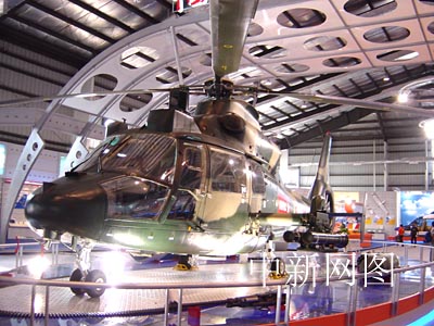 航空二集团的其展区突出位置展示一架国产直-9武装直升机.
