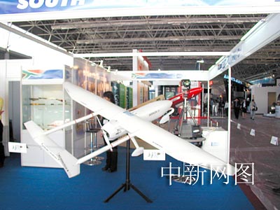与上届航展相比,南非的展台此次增大了许多,但展品还是一样,白色的是南非生产的无人机。