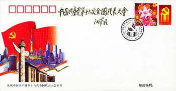 中新网11月5日电 为庆祝中国共产党第十六次全国代表大会的召开,中国国家邮政局将于11月8日发行邮票《黄河壶口瀑布》和《鲜花》各一枚,中国集邮总公司当日还将发行纪念封一枚。中共中央总书记江泽民为纪念封题字:“中国共产党第十六次全国代表大会”。