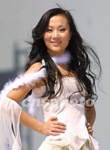 5日在2002年中国广州(新塘)国际牛仔服装节上,青年设计师的作品“黑白之舞”让人们看到靓丽的黑发与白色的服装共舞,极具时尚感。作者:赵振清