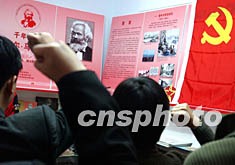 中共十六大八日在北京召开之时,北京大学和首都经贸大学的学生在是日开放的马克思展厅举起拳头,宣誓入党。作者:贾国荣