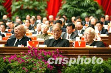中国共产党第十六次全国代表大会八日上午在北京人民大会堂举行,万里、宋平、薄一波(从左至右)等老同志在主席台就座出席开幕会。作者:毛建军