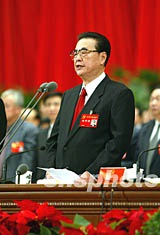 中国共产党第十六次全国代表大会八日在北京人民大会堂开幕,李鹏主持会议。作者:毛建军