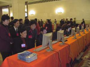 举世瞩目的中共十六大今天上午隆重揭幕,步入北京人民大会堂的代表们发现,在人民大会堂东大厅南侧,新增了一排专线上网电脑。轻点鼠标,官方新华社所属的新华网“中共十六大”实时报道网页就出现在人们眼前。