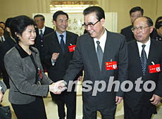 中共中央政治局常委、全国人大常委会委员长李鹏九日参加重庆代表团分组会,与代表一起讨论江泽民总书记的报告。作者:毛建军
