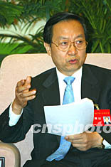 中国共产党第十六次全国代表大会九日继续就江泽民总书记的报告进行分组讨论。图为中国石化集团总经理李毅中代表在会上发言。作者:毛建军