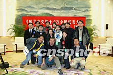 中国共产党第十六次全国代表大会十日继续举行分组会,采访会议的台湾记者在北京人民大会堂台湾厅合影,留下珍贵纪念。作者:毛建军