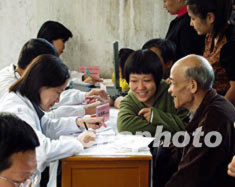中国健康扶贫工程10日在福建启动。该工程旨在协助政府推动社会力量为逐步解决贫困地区人民“因病致贫、因病返贫”的现象、使人人享有卫生保健的目标得以实现。图为医疗专家在福州社区进行义诊,开展健康扶贫工作。作者:华小锐