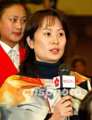 中共中央对外宣传办公室十日在北京举行中共十六大中外记者招待会,图为香港女记者正在提问。作者:毛建军