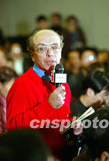 中国社会劳动保障部部长张左已和中华全国总工会副主席张俊九十一日在中共十六大新闻中心举行新闻发布会。张左已回答记者提问。毛建军 摄