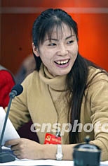 中国体坛素有“亚洲女飞人”称号的李雪梅,身为中共十六大代表参加四川代表团分组会。作者:毛建军
