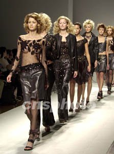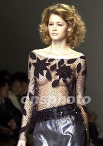 十一日正在东京举行的二00三年春夏时装展上,黑色透视装分外迷人。作者:陶光雄