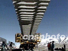 今年是青藏铁路建设的攻坚之年,在2.5万名建设者的日夜奋战下,青藏铁路建设工地捷报频传:昆仑山、风火山隧道贯通;三岔河、雪水河、长江源特大桥建成;清水河特大桥主体工程完工;青海境内望昆至不冻泉、不冻泉至楚玛尔河两个冻土路基试验段完成;日前,青藏铁路又顺利铺轨到昆仑山。