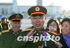 解放军代表隗福临步入会场时受到媒体关注。
