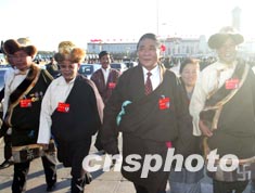 藏族代表们清晨步入会场。