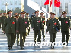 中国军方高级将领的党代表们,十四日清晨在北京出席中共十六大闭幕会。