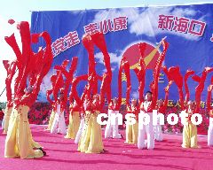今天下午,在中共十六大胜利闭幕之际,六万多名海口民众欢聚万绿园,载歌载舞,用欢庆的锣鼓,优美的舞蹈和动情的歌声抒发内心的喜悦和对美好将来的祝愿。