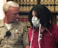 流行乐坛之王迈克尔·杰克逊以被告方证人的身份出现在加利福尼亚州一家法庭上,因他的一名前经纪人以违约罪名向他索赔2100万美元并提出诉讼。身穿红衬衫、面带白口罩的迈克尔·杰克逊当天中午乘坐豪华加长轿车来到加州圣巴巴拉县高等法院。等候在此的数十名歌迷看到杰克逊亮相之后都情不自禁地尖叫不止。