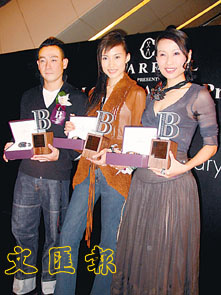 中新网11月15日电 据香港文汇报报道,香港艺人叶童、林保怡及杨峥日前获某杂志颁发的“魅力大奖”。