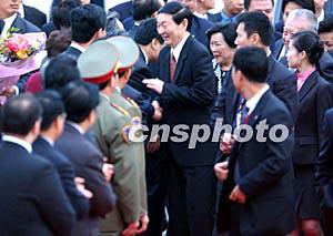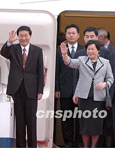 中国国务院总理朱镕基和夫人劳安,11月18日下午乘坐专机抵达香港参加“第十六届世界会计师大会”。