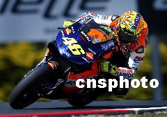在最近举行的2002澳大利亚摩托车大奖赛中,瓦伦帝诺·罗西技压群雄,赢得大赛桂冠。图为赛场上的瓦伦帝诺·罗西。SP/cnsphoto 摄