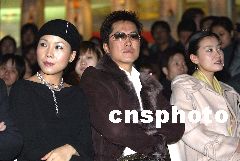 图:著名歌星田震与毛宁在时装周观看演出