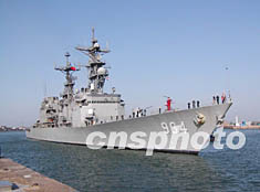 11月24日上午十时,美国海军“福斯特”号驱逐舰驶抵青岛,开始对青岛进行为期五天的友好访问。这是自去年中美撞机事件以来,美国军舰首次访问中国大陆。图为即将停靠码头的美舰。作者:邹山