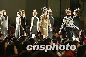 张继成“颓废的生灵”主题时装发布会二十五日晚在中国国际时装周上举行。其设计灵感来自于本世纪初的恐怖事件,作品借助白色、黑色、米色等高雅颜色,表现人们的世纪矛盾心态。毛建军 摄