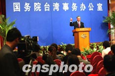 中国国务院台湾事务办公室二十七日在北京钓鱼台大酒店举行新闻发布会。新闻发言人张铭清就不久前闭幕的中共“十六大”、“两岸直航”等记者们关心的问题回答提问。作者:毛建军