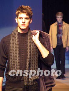 二十七日,男人的天空·阿德米男装发布会在中国大饭店展现男性时装的魅力。图为外国模特展示阿德米男装。作者:盛佳鹏