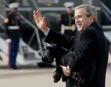 11月27日,美国总统布什怀抱小狗,回得克萨斯州克劳福德牧场过感恩节。