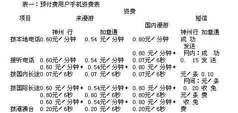 分未漫游(在北京市内使用)和漫游(在国内其他地区使用)两类收费标准,预付费用户首先要给手机充值,同时预付费用户不享受长途话费分时段优惠政策,具体资费标准见表一。