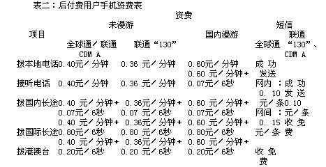 也分国内漫游和未漫游收费标准,具体资费标准见表二。