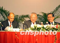 香港特区第十届全国人民代表选举第二次全体会议11月29日在香港召开,全国政协副主席霍英东、香港特首董建华、全国人大常委会秘书长何椿霖出席港区人大代表选举会议,会议通过总监票人及监票人名单.中新社传真 洪少葵 摄