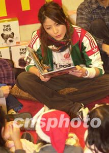 歌星陈慧琳11月29日在香港出席“麦当劳抱抱大头狗”爱心慈善活动,陈慧琳为出席活动的小朋友讲故事,其形象健康深受小朋友欢迎。中新社传真 邓庆乐 摄