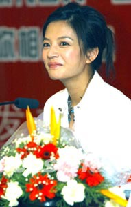 赵薇11月30日在郑州为休闲服饰诺漫琦做代言人,在记者见面会上,纤瘦了很多的赵薇光彩照人。赵薇这是第一次为服装品牌做代言人,她表示很喜欢这个品牌的休闲服饰。马健 摄