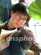 北京一位青年正在研读公务员考试课本,准备迎接本月二十一日进行的公务员招聘考试。据人事部统计,今年有近二十三万人报名,通过资格审核可进入考试的人数达十二万,为历年人数之最。此次招考的职位有五千四百个,中央国家机关各职位竞争尤其激烈,海关总署计划招收八人,笔试人员竞达一千多人。作者:王丽南