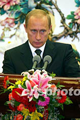 俄罗斯总统普京与中国国家主席江泽民二日在北京人民大会举行会谈并出席签字仪式后,共同会见中外记者,回答记者提问。 作者:毛建军